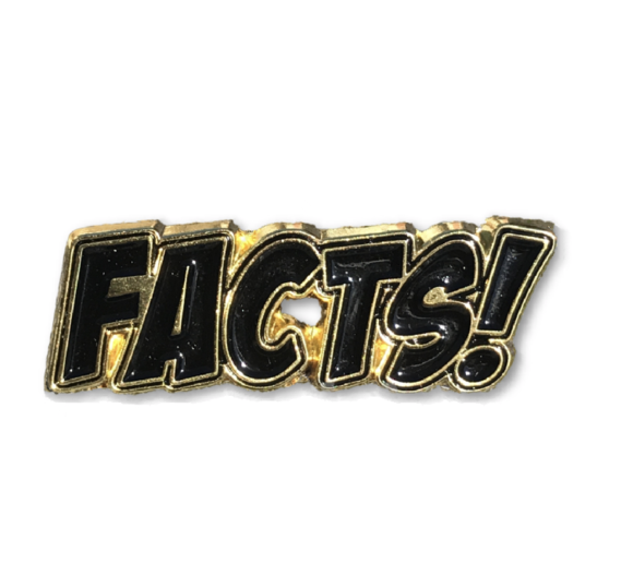 The Facts pin perfectly captures everyone's favorite  new catch phrase: FACTS! Pin Details 1.5"  Gold Plated Dual Rubber Backs