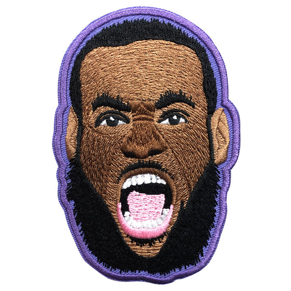 | Inspired by the living legend repping the Lakers we are proud to present the Lebron James face patch. Purple Background/border version; Perfect for your backpack, varsity jacket or headwear. Patch Details • 4” • Iron-on •. 100 % Embroidered details |